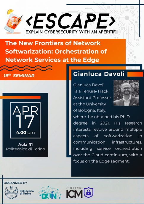 Seminar The New Frontiers of Network Softwarization: Orchestration of Network Services at the Edge, held by Professor Gianluca Davoli.