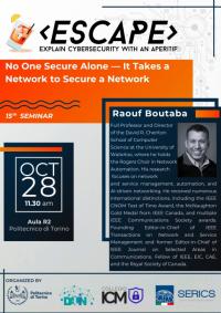 Seminario No One Secure Alone - It Takes a Network to Secure a Network, tenuto dal prof. Raouf Boutaba dell'University of Waterloom.